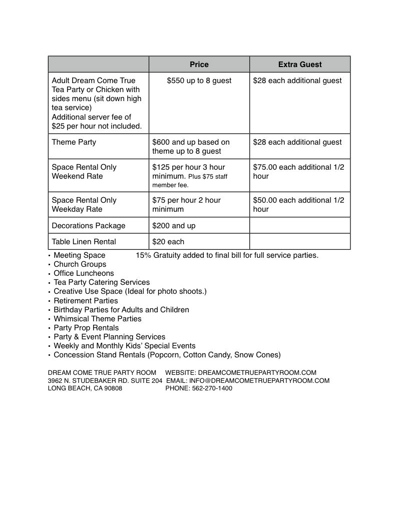 AdultUpdatedPriceSheetforWebsite - Dream Come True Party Room