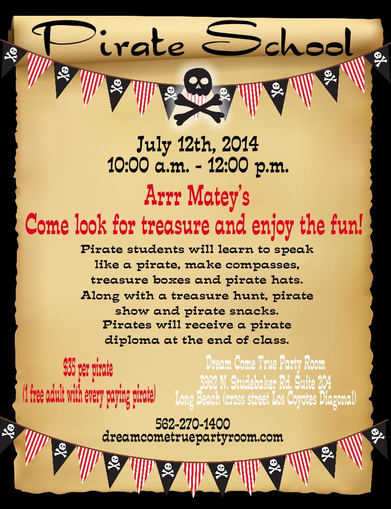 PirateSchoolMayFlyer - Dream Come True Party Room